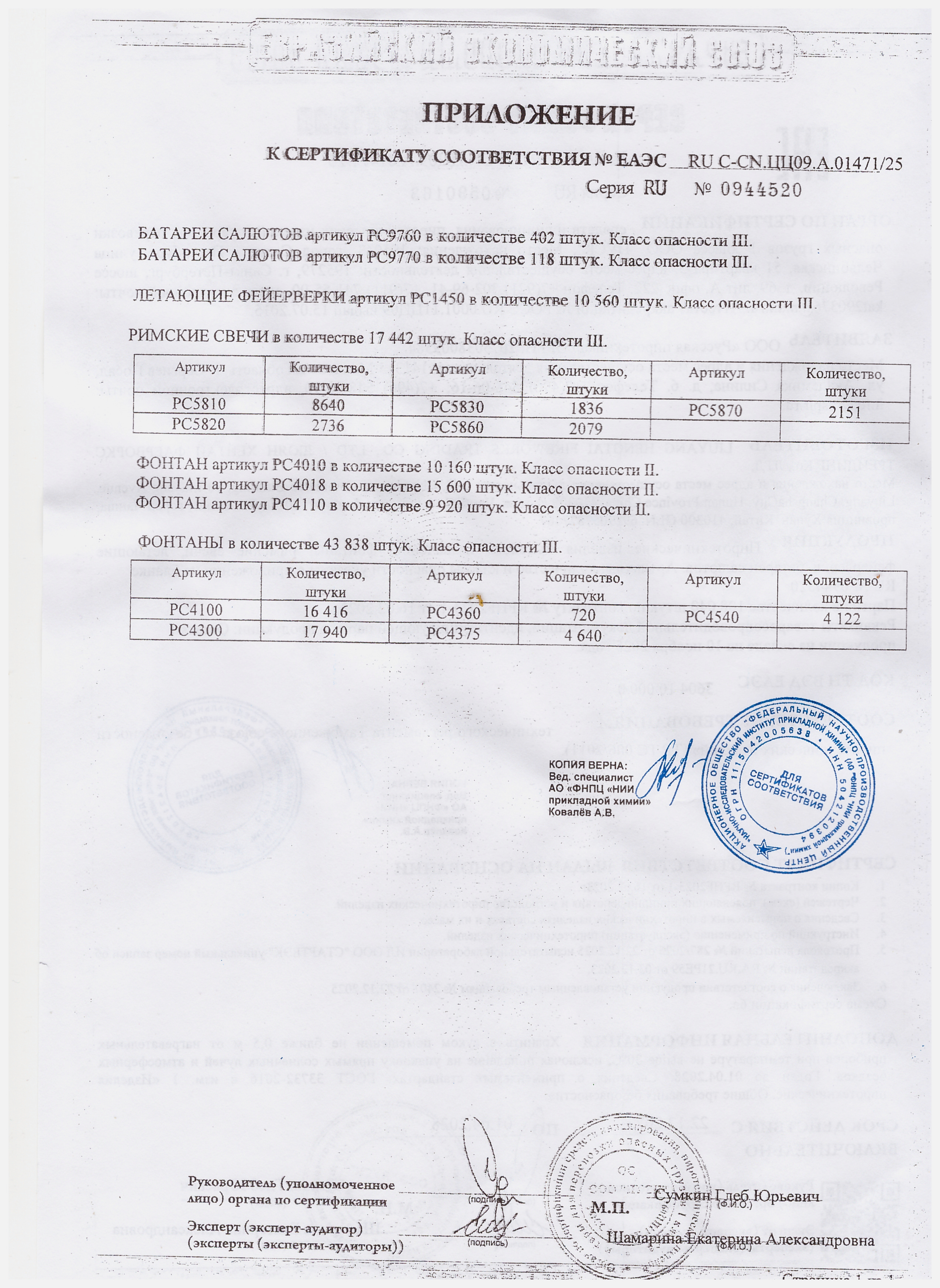 Приблизительная продолжительность фейерверков в сек.