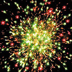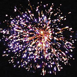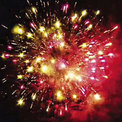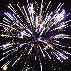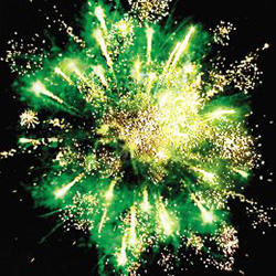 Сине-бело-золотая мерцающая сфера (пион) и облако треска (трещащий дождь). Зеленые звезды с пышными хвостами (кокос) и облако треска (трещащая хризантема). Красно-зеленая мерцающая сфера (пион). Серебряные звезды с пышными хвостами (кокос) и облако треска (трещащий дождь). Желто-красная сфера (пион) и облако треска (трещащий дождь). Сине-золотая мерцающая сфера (пион) и облако треска (трещащий дождь). Красочная концовка. ЗАЛП: Зелено-фиолетовая сфера (пион) и облако треска (трещащий дождь).