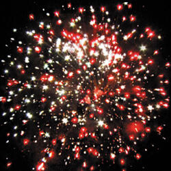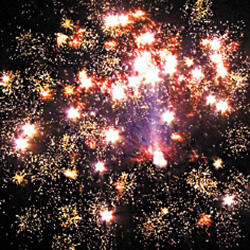 Цветные звезды с пышными хвостами. Трещащая цветная сфера.