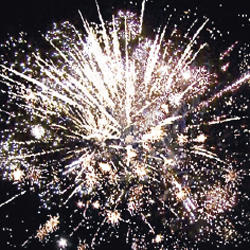 Разноцветные звезды с пышными хвостами. Цветное мерцание. Множество серебряных ниспадающих нитей. Фиолетовая сфера. Серебряные звезды и облако треска.