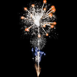 Букеты из цветных, золотых трещащих огней, серебряных трещащих сфер. Разноцветные кометы, спиралеобразные форсовые трассы, свистящие элементы разрываются сферами из разноцветных огней, золотых форсов с серебряными мерцающими трещащими искрами и множества трещащих сфер.