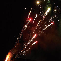 Трещащие вспышки. Разноцветные кометы с хвостами.