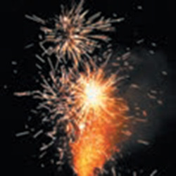 Золотые искры и синие огни. Поток золотых искр, крупные белые вспышки. Поток золотых искр, объемный треск.