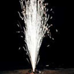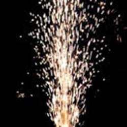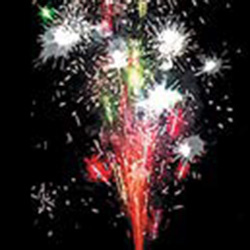 Синее пламя в основании и поток золотых звездочек, поток серебряных искр, поток разлетающихся шуршащих, красных и зеленых огней, поток трещащих, оранжевых и зеленых огней.