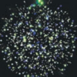 Сфера из красных звезд с серебряными хвостами, серебряных комет, фиолетовых звезд с серебряными хвостами, красных и зеленых звезд