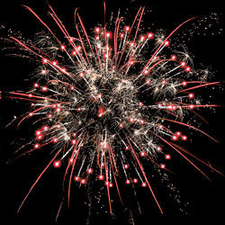 Разноцветные кометы, искристые трассы разрываются сферами из серебряных мерцающих и цветных огней с форсами, золотых трещащих разлетающихся искр и множеством трещащих сфер.