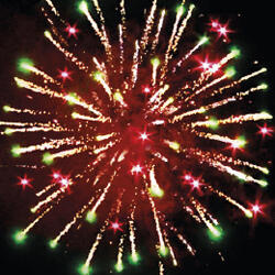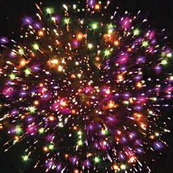 Разноцветные мерцающие сферы. Цветные звезды с пышными хвостами и облако треска. Множество золотых ниспадающих нитей.