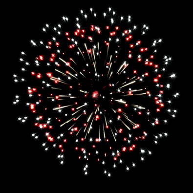 Разноцветные кометы разрываются сферами из: Серебряных форсов с серебряными огнями на концах и трещащих огней. Серебряных форсов с красными и зелеными огнями на концах. Красных и белых мерцающих огней. Трещащих огней.