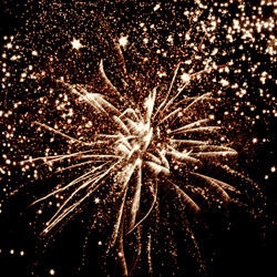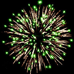 Разноцветные кометы разрываются сферами из цветных, мерцающихи трещащих огней, золотых и серебряных форсов.