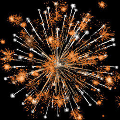 Разноцветные кометы разрываются сферами из цветных мерцающих огней, серебряных форсов и золотых трещащих огней.