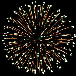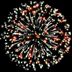 Разноцветные кометы. Серебряные искристые трассы. Сферы из золотых форсов и цветных огней. Множества серебряных трещащих сфер. Серебряные форсы.