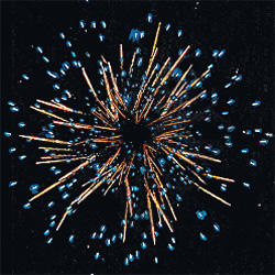Разноцветные кометы разрываются сферами из цветных и серебряных пульсирующих огней, трещащих швермеров с золотыми форсами в центре.