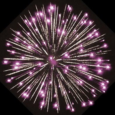 Разноцветные кометы разрываются сферами из цветных мерцающих огней, серебряных форсов и множества серебряных трещащих сфер.