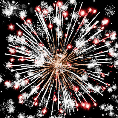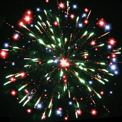 Серебряные спиралеобразные трассы разрываются сферами из разноцветных форсов с цветными мерцающими огнями и серебряными трещащими искрами.