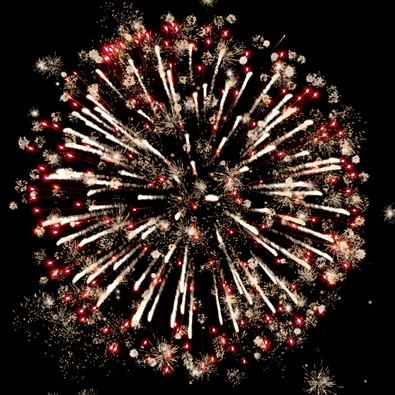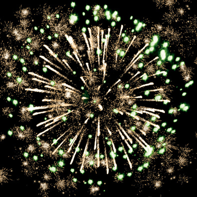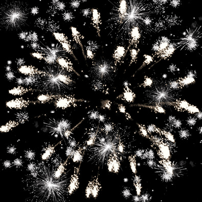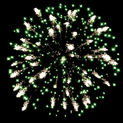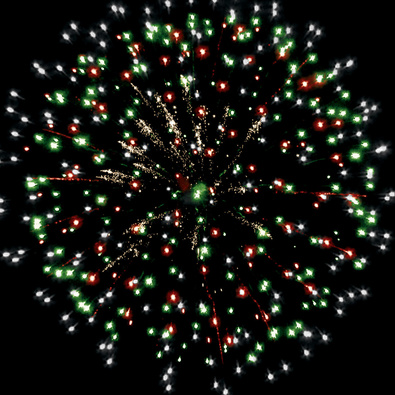 Разноцветные кометы разрываются сферами из цветных мерцающих и трещащих огней с серебряными искрами.
