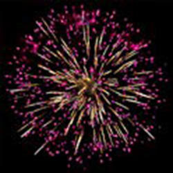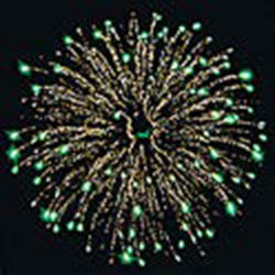 Разноцветные кометы разрываются сферами из золотых искристых форсов, крупных цветных пкльсирующих огней с серебряными форсами в центре.