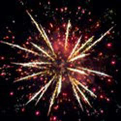 2 уровня. Нижний уровень - букеты из золотых форсов. Разноцветные кометы, мерцающие шуршащие трассы разрываются сферами из: серебряных форсов с красными огнями на концах, зеленых и золотых мерцающих огней; серебряных форсов с серебряными огнями на концах, зеленых и белых мерцающих огней; золотых искристых форсов и трещащих огней; серебряных форсов с желтыми огнями на концах и трещащих разлетающихся огней; золотых форсов с трещащими искрами и фиолетовых огней; синих и красных мерцающих огней; серебряных форсов и зеленых мерцающих огней; золотых форсов с серебряными мерцающими искрами и желтых огней; золотых форсов с зелеными мерцающими искрами и красных огней; золотых искристых форсов и синих огней; серебряных искристых шуршащих форсов и красных мерцающих огней; золотых форсов с красными мерцающими искрами; золотых форсов с золотыми мерцающими искрами; серебряные форсы с шуршащими искрами, голубых и золотых мерцающих огней; золотых форсов, синих и белых мерцающих огней.