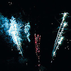 2 уровня. Нижний уровень. букет из красных и трещащих огней; букет из зеленых и трещащих огней; букеты из золотых форсов с трещащими искрами (веер S); букет из синих и трещащих огней внизу и букетики из синих и трещащих серебряных огоньков наверху (веер W); Разноцветные кометы разрываются сферами из: фиолетовых, зеленых и трещащих огней; голубых огней и множества трещащих сфер; серебряных искристых форсов, фиолетовых огней и множества трещащих сфер; серебряных искристых форсов, синих огней и множества трещащих сфер; золотых форсов с трещащими серебряными искрами и желтых огней; серебряных искристых трещащих форсов и красных огней; серебряных искристых трещащих форсов и голубых огней; веер: боковые ветви – серебряные трассы с белыми мерцающими искрами; центр – золотые трассы с красными мерцающими искрами разрываются сферами из золотых форсов с красными мерцающими искрами; веер: боковые ветви – серебряные искристые трассы; центр – сферы из золотых форсов , красных и зеленых огней.