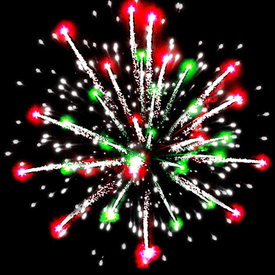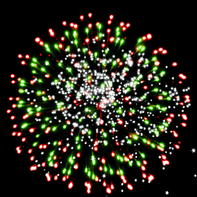 Разноцветные кометы разрываются сферами из: Серебряных форсов, красных, зеленых и серебряных мерцающих огней. Красных, зеленых и серебряных мерцающих огней. Золотых форсов и синих огней. Золотых форсов с красными искрами.