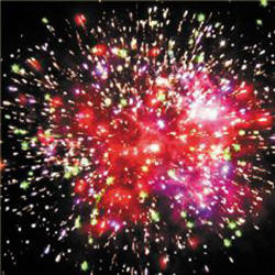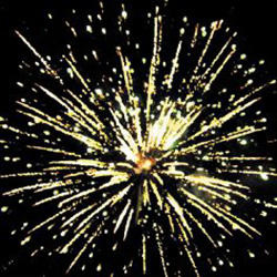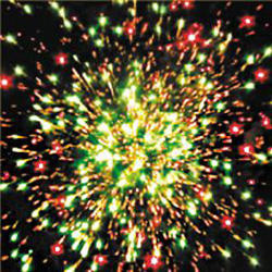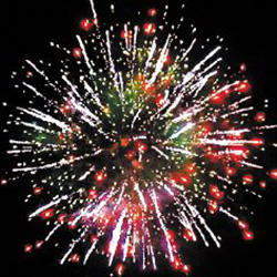 Фонтан: объемный треск, красные, зеленые и синие огни. Салютные залпы: Красная комета, внизу - сноп мерцающих искр. Красно-зелено-фиолетовая сфера (пион) и золотое мерцание. Зеленая комета, внизу - сноп мерцающих искр. Красно-зеленые звезды с пышными хвостами (кокос) и белое мерцание. Желтая комета, внизу - сноп мерцающих искр. Множество серебряных ниспадающих нитей (парча) и белое мерцание. Фиолетовая комета, внизу - сноп мерцающих искр. Красно-зеленая сфера (пион). Трещащая комета. Красные звезды с пышными хвостами (кокос) и треск.