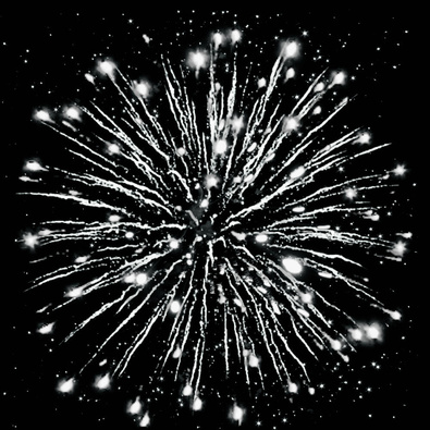 Золотые трассы с золотыми мерцающими огнями на концах разрываются сферами из серебряных парчовых форсов с цветными трещащими огнями.