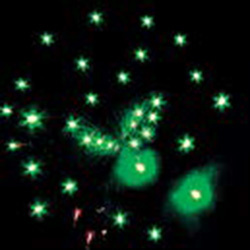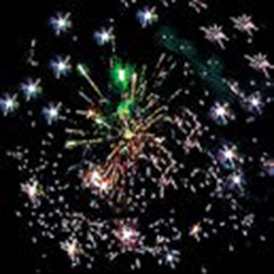 Разноцветные кометы разрываются сферами из: красных огней и множества трещащих сфер; зеленых огней и множества трещащих сфер; синих огней и множества трещащих сфер; фиолетовых огней и множества трещащих сфер; серебряных форсов и трещащих золотых огней.