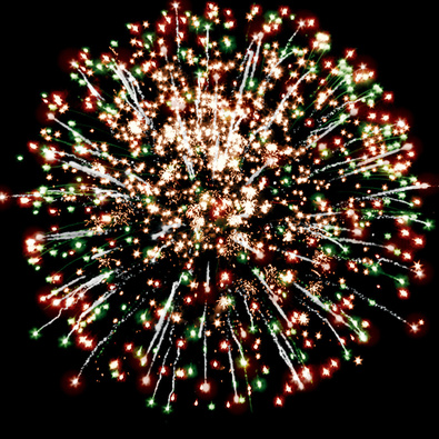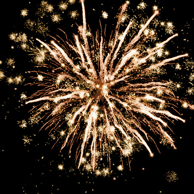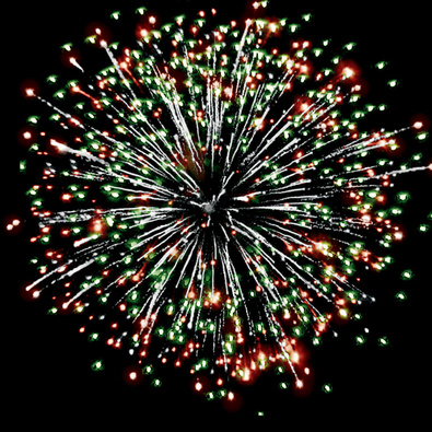 Сферы из золотых и серебряных форсов с разноцветными огнями на концах, и цветных трещащих и мерцающих огней.