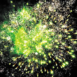 Красно-белая мерцающая сфера (пион). Зеленая сфера (пион) и треск. Сине-красная сфера (пион). Желто-зеленая мерцающая сфера (пион). Трещащая сфера. Желто-золотая мерцающая сфера (пион). Красно-зеленая сфера (пион). Белая мерцающая сфера (пион) и треск. Желтая сфера (пион) и облако треска (трещащий дождь).