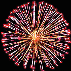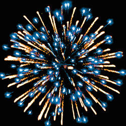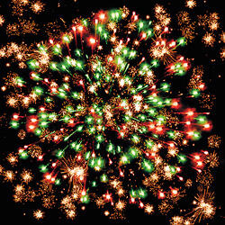 Разноцветные кометы разрываются сферами из золотых искристых форсов и золотых, мерцающих и трещащих огней.