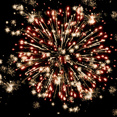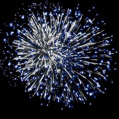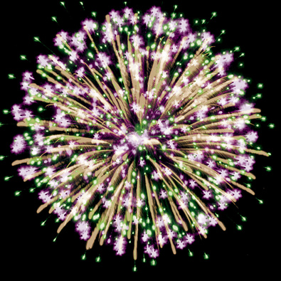 Разноцветные кометы разрываются сферами из цветных мерцающих огней и множества трещащих сфер.