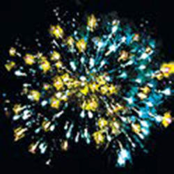 Разноцветные кометы, серебряные, трещащие искристые трассы разрываются сферами из золотых форсов с искрами и цветных пульсирующих огней.