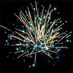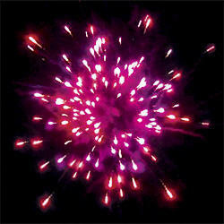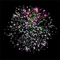 Разноцветные кометы разрываются сферами из серебряных форсов с цветными, мерцающими огнями на концах и множества трещащих сфер.