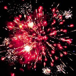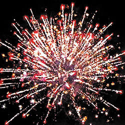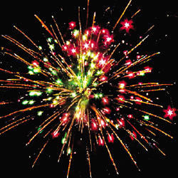 Красно-зеленая сфера (пион) и треск. Множество серебряных ниспадающих нитей (парча) и красно-белая мерцающая сфера (пион). Множество серебряных ниспадающих нитей (парча) и красно-зеленое мерцание. Красно-белая мерцающая сфера (пион) и облако треска (трещащий дождь).