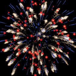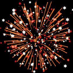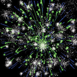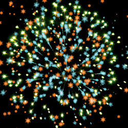 Разноцветные кометы разрываются сферами из золотых форсов, цветных мерцающих и трещащих огней и множеством трещащих сфер.