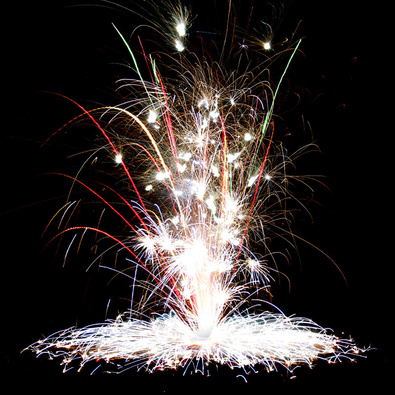 Поток красных, зеленых и трещащих огней. Поток оранжевых и трещащих искр. поток красных, синих и трещащих искр. Поток красных, зеленых и разлетающихся гремящих искр. Параллельно земле работают 8 фонтанов, поток серебряных искр.