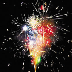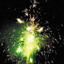 Серебряные искры с треском на конце. Поток трещащих искр и зеленые огни. Объемный треск и красно-зеленые огни.