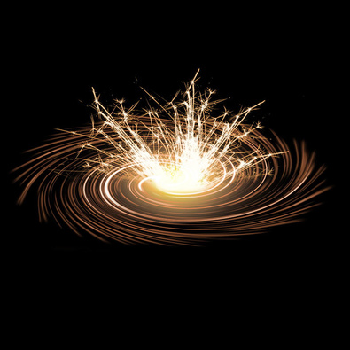 Раскручивается, разбрасывая золотые искры и светясь цветным огнём.