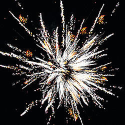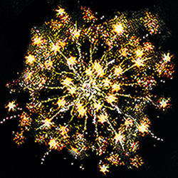 Разноцветные кометы разрываются сферами из: красных и белых мерцающих огней; красных огней и множества трещащих огней; серебряных форсов и белых мерцающих огней; серебряных форсов и множества золотых трещащих сфер.