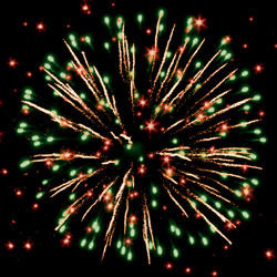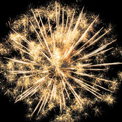 Разноцветные кометы. Сферы из серебряных форсов и цветных огней. Мелкие золотые искры. Золотые форсы и множества трещащих серебряных сфер.
