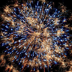 Разноцветные кометы. Множества трещащих сфер. Цветные огни. Сферы из серебряных форсов и золотых огней.
