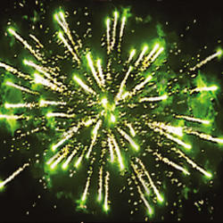 Разноцветная мерцающая сфера. Свист. Цветные звезды с пышными хвостами и облако треска.