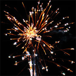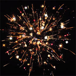 Красные кометы раскрываются красными пальмами с белым мерцанием. Зеленые кометы раскрываются трещащими парчовыми коронами. Голубые кометы раскрываются зелеными пальмами с золотым мерцанием. Красная комета раскрывается ивами с зеленым мерцанием. Зеленые кометы раскрываются золотыми пальмами с красным мерцанием. В финале: Голубые кометы раскрываются золотыми ивами с треском.
