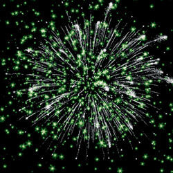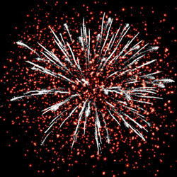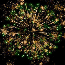 Свистящие элементы, разноцветные кометы разрываются сферами из золотых форсов с цветными огнями на концах, множества разлетающихся трещащих искр и золотых трещащих огней.