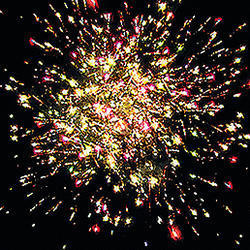 Букеты из трещащих огней. Сферы из золотых искристых форсов с цветными мерцающими огнями на концах.