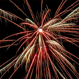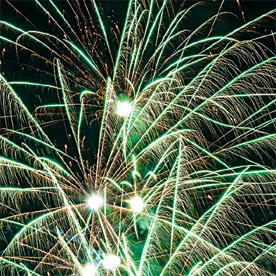 Разноцветные кометы разрываются сферами из: красных и белых мерцающих огней; зеленых и трещащих огней; фиолетовых и зеленых тмерцающих огней; красных огней с форсами и трещащих огней; зеленых огней с форсами и трещащих огней; фиолетовых огней с форсами и трещащих огней; синих огней с золотыми искристыми форсами; красных огней с золотыми искристыми форсами; зеленых огней с золотыми искристыми форсами. золотые с трещащими искрами трассы разрываются сферами из синих огней и множестват трещащих сфер.