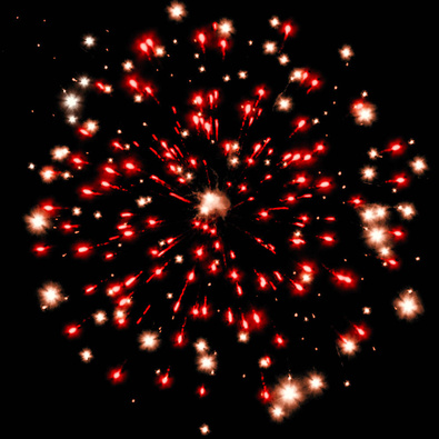Разноцветные кометы разрываются сферами из цветных мерцающих огней, серебряных искристых форсов и множества серебряных трещащих огней.