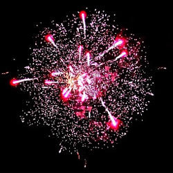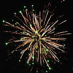 Красные и зеленые кометы в сопровождении синего жемчуга с золотым мерцанием. Парчовые короны с рубиновыми звездами. Парчовые короны с изумрудными звездами. Золотые свистящие рыбки. Красные кокосы переходят в трещащие пионы. Зеленые кокосы переходят в трещащие пионы. Золотые трещащие сферы с красным мерцанием. Красные кокосы раскрываются золотыми хризантемами. Зеленые кокосы раскрываются золотыми хризантемами. В финале красные волны переходят в тысячи трещащих хризантемами и серебряные пионы.