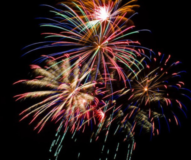 Потоки зеленого и красного дыма. На парашютах спускаются разноцветные ленточки и цветные дымы. Свистящие элементы, сферы с громкими хлопками, серебряные трещащие звезды. В концовке веер из трещащих звезд и цветных дымов.